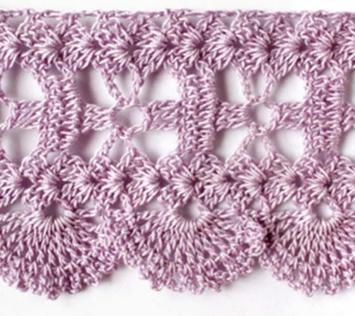 The Three Chain Lace Border is achieved by creating a sequence of chain stitches, resulting in a lacy and open design that complements a variety of projects. Its simplicity allows it to blend seamlessly with different stitch patterns and textures, enhancing the overall aesthetic appeal of your work.