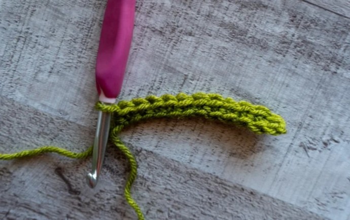 Row 1: Ch-(10, 12, 14, 16, 18), sc in 2nd ch from hook and in each ch to end. (9, 11, 13, 15, 17)