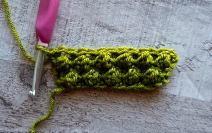 Row 4: Ch-1, turn, sc in first st, sl st in next st, * Berry in next sc, sl st in next sl st * repeat between * * until one st remains, sc in final st.