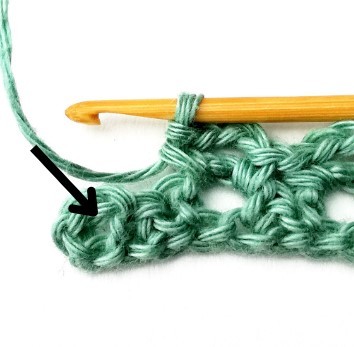 8. At the end of the row, when you have three stitches left, skip one stitch and make a single crochet in the next one.