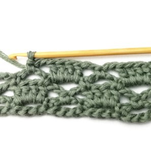 12. Make two double crochets in the chain two space.