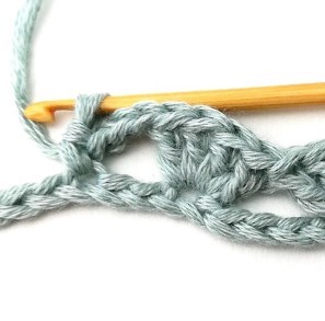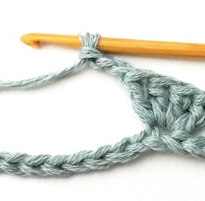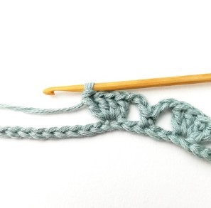 17. Chain three and turn your work around. Chain three counts as a stitch.