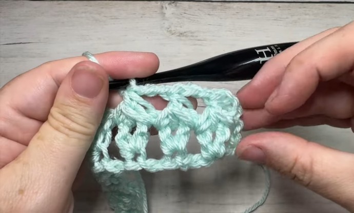 Row One: Dc in 5th ch from your hook, ch 1, dc in the same st as previous dc, *sk the next 2 sts, [dc, ch 1, dc] in the next st; Rpt from * across until 2 chs remain, sk the next st, dc in the final st, ch 2, turn.