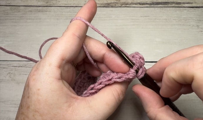 Row One: Dc in the 4th ch from your hook (starting ch-3 counts as a dc) and in each ch across. Ch 2 (does NOT count as a st), turn.