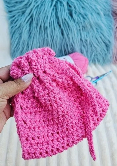 I have a fun new project for you! It is a pattern for a crochet drawstring makeup pouch that is perfect for holding all your brushes, lipsticks, and other makeup.