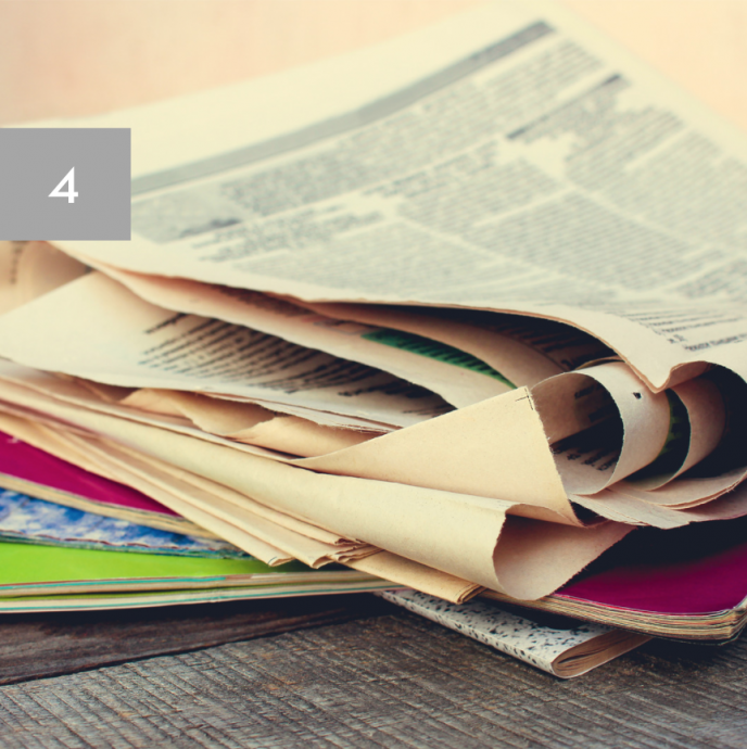 Recycle old magazines, newspapers, and packing materials. Organize old paper or plastic shopping bags that are lying around in one location, so you can reuse them. Shred sensitive documents you don't need anymore. Scan important papers, and shred the originals if they don’t need to be saved.
